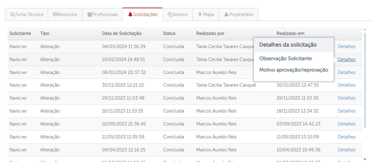 Sua solicitação irá cair para o time da Central e assim que analisado eles irão retornar se foi aprovado ou não. No Lopesnet prontos essa informações ficam disponíveis na aba "Solicitações" na ficha do imóvel, caso haja alguma descrição, ao passar o mouse por cima da palavra "Detalhes" ela irá aparecer.