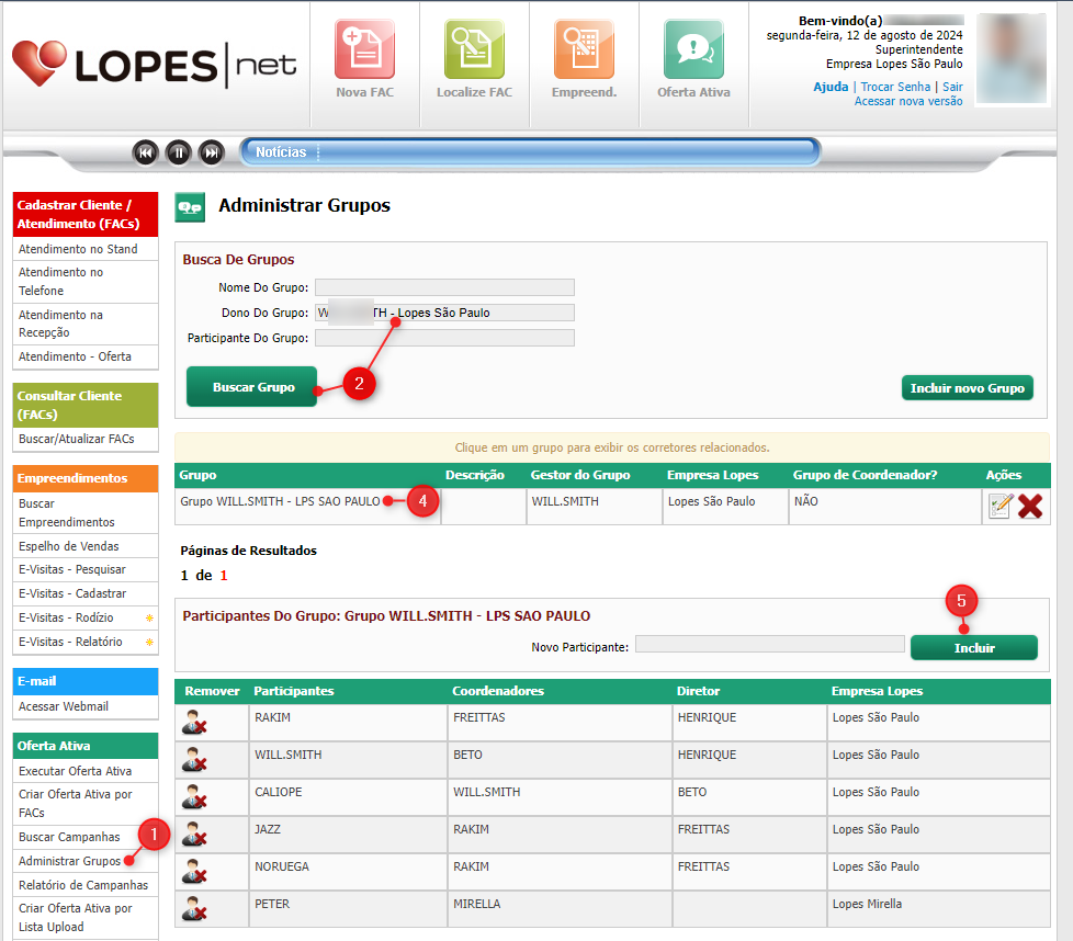 Caso já esteja inserido num Grupo de Oferta e ainda não aparece as campanhas para serem ofertadas, o dono do Grupo ou o coordenador deverá solicitar ao CRM que vincule uma base de clientes segmentados.
