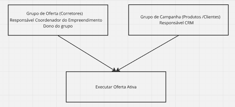 1 - A oferta ativa é o cruzamento do Grupo de Oferta onde são inseridos os corretores credenciados participantes, e o cruzamento do Grupo de Campanha onde temos a base de clientes segmentados para serem ofertados à um produto que faça sentido conforme a procura do mesmo.